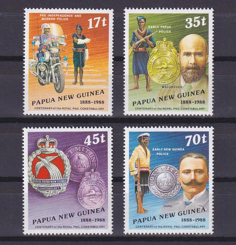 1988 г.Папуа Новая Гвинея100-летие Королевской Полицейской службы Папуа Новой ГвинеиСостояние: чистыеКлей: без наклейкиMichel: № 567-570