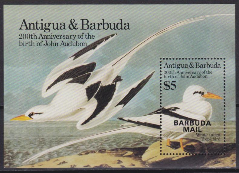 200-летие со дня рождения Джона Джеймса Одюбона. Марки Антигуа и Барбуда с надпечаткой "BARBUDA MAIL"