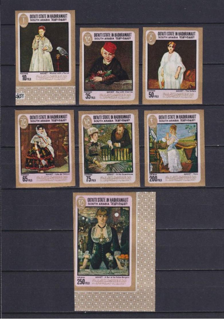 1967 г.Хадрамаут (Qu'aiti State of Hadhramaut)Без перфорацииЕсть мелкие дефекты бумаги.Состояние: чистыеКлей: без наклейкиMichel: № 131-137 ** 20 €