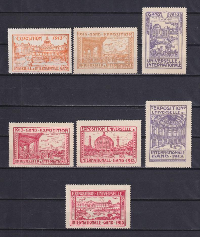 1913 г.БельгияНабор непочтовых марок. Международная выставка в Генте.Есть мелкие дефекты бумаги.Состояние: чистыеКлей: без наклейки, без клея