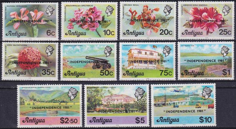 1981 г.АнтигуаЦветы. Марки №405-406 и №08-416 с надпечаткой "INDEPENDENCE 1981"Состояние: чистыеКлей: без наклейкиMichel: № 612-622 – 12 €