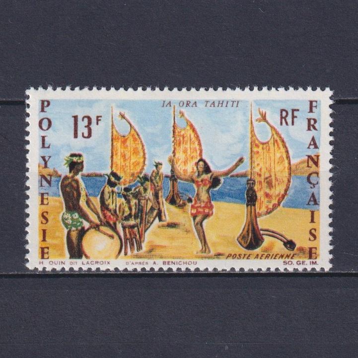 1966 г.Французская ПолинезияТонкое местоСостояние: чистыеКлей: с наклейкойДефекты: тонкое местоMichel: № 62