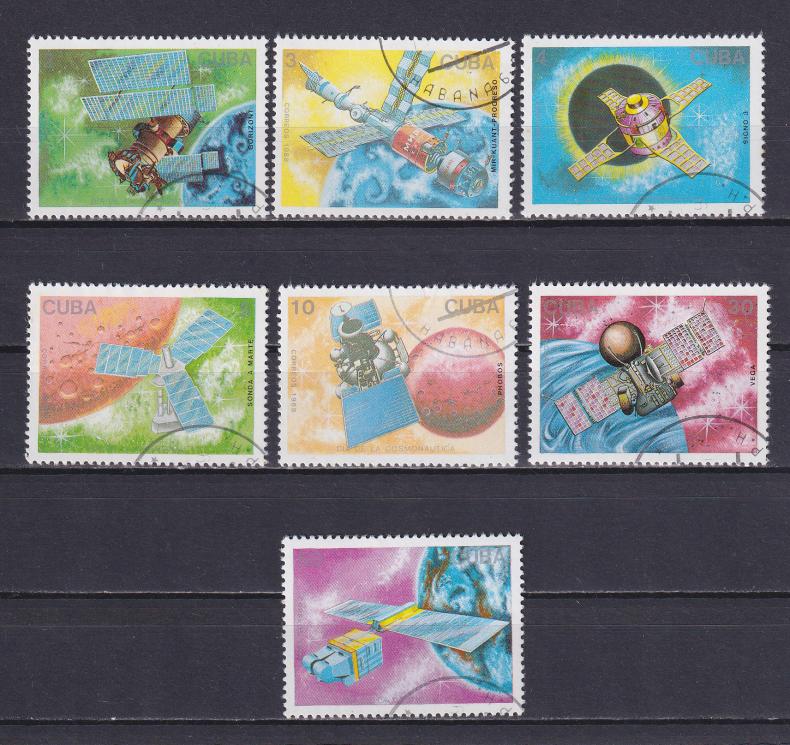Спутники на почтовых марках Кубы.