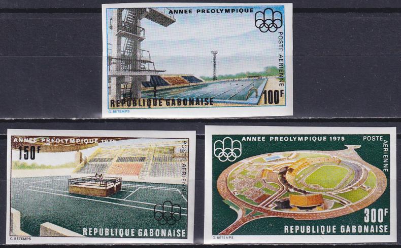 1975 г.ГабонБез перфорацииЕсть мелкие дефекты бумаги.Состояние: чистыеКлей: без наклейкиMichel: № 569-571