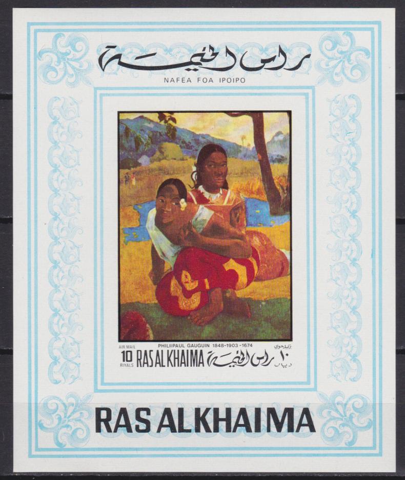 1970 г.Рас-эль-ХаймаБез перфорацииЕсть мелкие дефекты бумаги.Состояние: чистыеКлей: без наклейкиMichel: Бл. 88B – 20 €