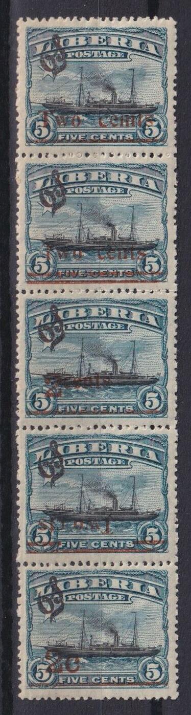 1915 г.ЛиберияСцепка из 5-ти марок с различными вариациями надпечатки.Состояние: чистыеКлей: без наклейки, с наклейкойScott: № 088