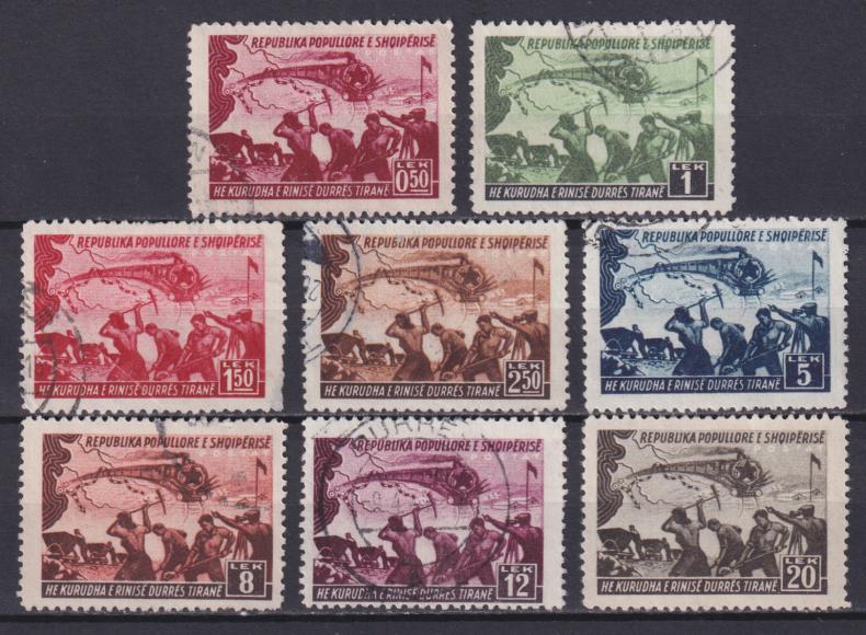 1948 г.АлбанияУ марки номиналом 1:50 L залом у левого нижнего угла.Смотрите изображение.Состояние: гашеныеКлей: без наклейки, без клеяДефекты: заломMichel: № 448-455 (●) 60 €