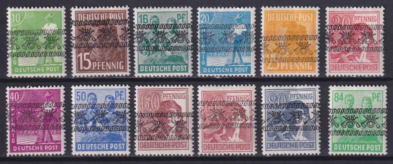 1948 г.Американская и Британская ЗонаПеревёрнутая надпечатка.Серия неполная.Каталожная цена указана за марки без наклейки.Состояние: чистыеКлей: след от наклейкиMichel: № 39I K-51I K * 421 €