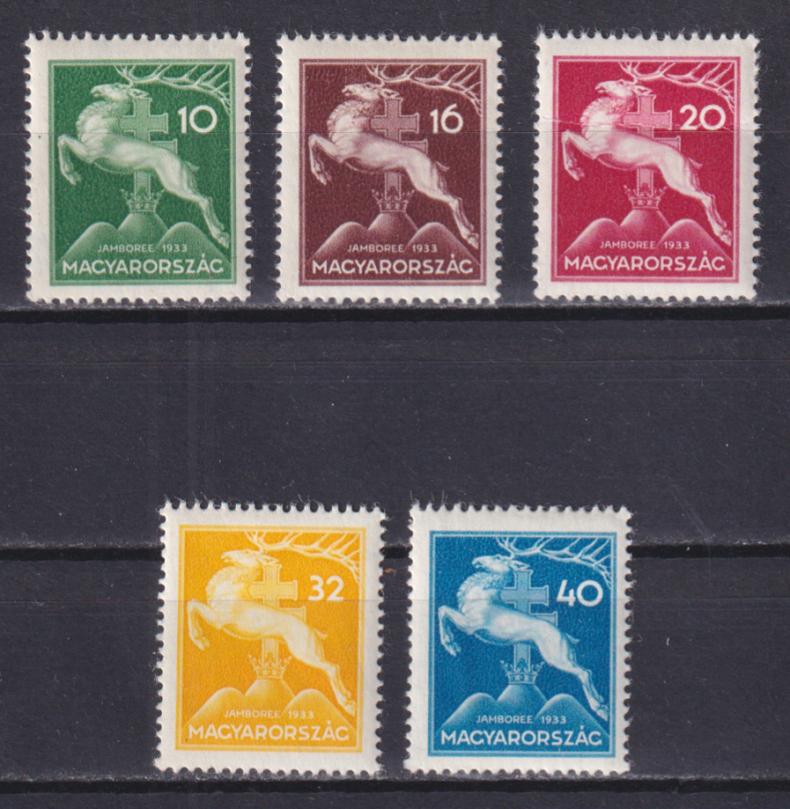 1933 г.Венгрия20f - залом.Смотрите изображение.Состояние: чистыеКлей: без наклейкиДефекты: заломMichel: № 511-515 ** 34 €